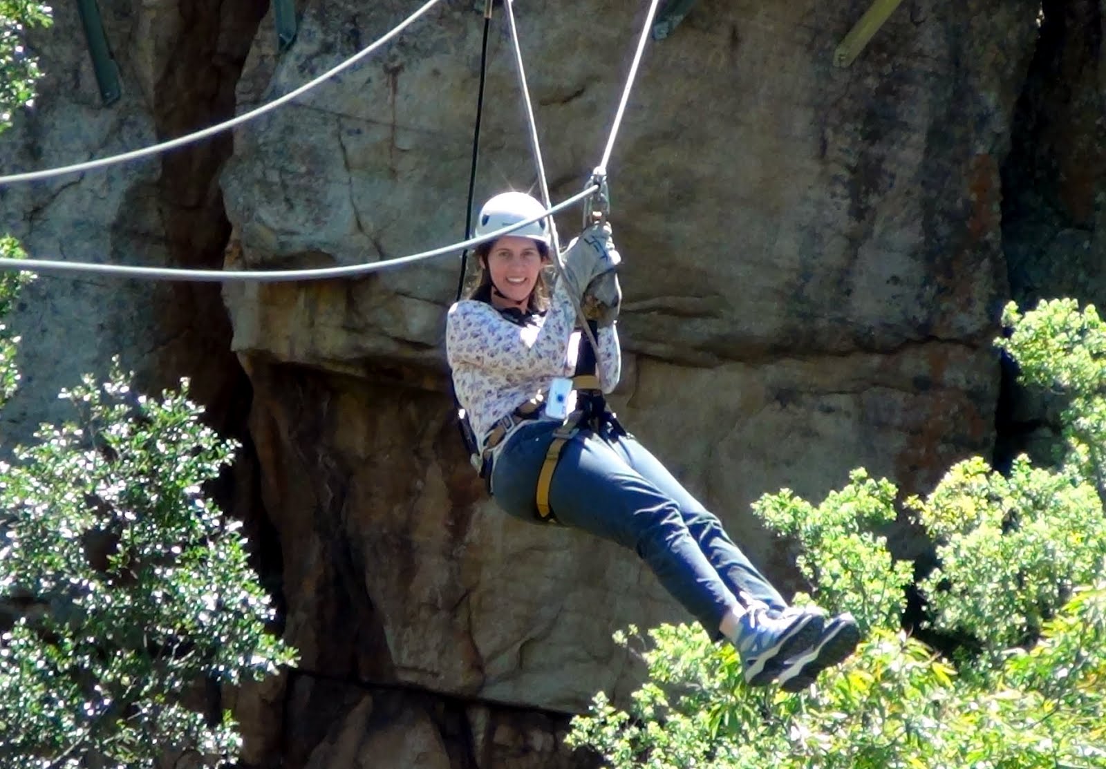 We soon retired for the evening, relaxed after a long day of driving and an afternoon of strolling about in luxury. Next day, we had a leisurely breakfast, then headed out for the Magaliesberg Canopy Tour. We arrived, received instruction, were fitted out with gear, and then driven to Ysterhout Kloof, a canyon carved into a mountain side. There, we began zip-lining back and forth across the gorge, admiring the view, daring to look down, and learning to brake...